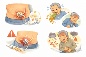 胃ろうは、栄養や水分を安定して確保し、生活を支える大切な手段です。一方で、皮膚トラブルや逆流・感染などのリスクもあり、毎日の小さな変化を見逃さないことが安全につながります。